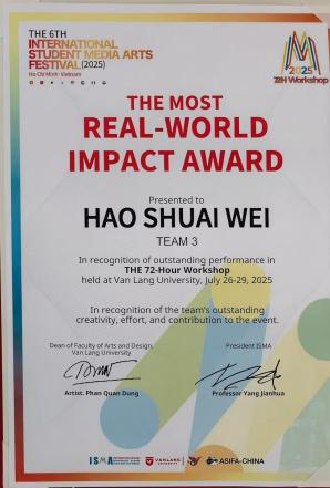 第六届ISMA艺术节以“未来媒体:人・河流・城市”为主题,通过影像、动画、新媒体以及人工智能等多种形式,深入探讨技术、自然与社会的交汇融合。活动包含在线竞赛、72小时创意工作坊以及学术论坛,来自中国、越南、美国、韩国、日本5个国家近60所大学的师生们齐聚越南范朗大学。我校实验艺术学院王帅教授带领研究生团队受邀参会,凭借扎实的创作实力与深刻的人文思考,在合作中展现出实验精神和影像创作、制作能力,最终与同学所在工作坊团队分别斩获最具影响力奖、最具创新奖和最佳技术奖。