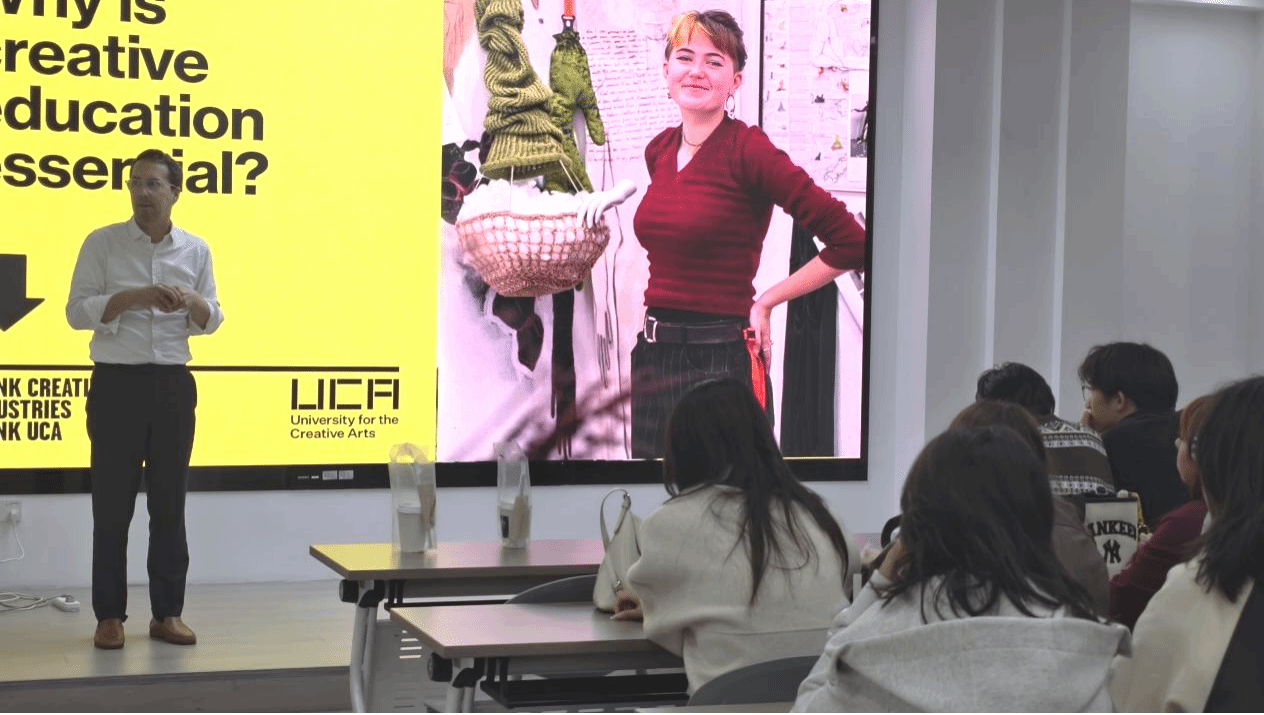 英国创意艺术大学的宣讲环节别开生面,先以该校前校长Terry Perk教授主持的“Framing Space”主题工作坊开始。在工作坊中,同学们通过特定的几何框架结构,重新观察和塑造身边的日常环境。他们相互协作,将普通空间巧妙转化为全新的世界、舞台、画面乃至叙事场景。这一沉浸式体验不仅激发了学生的创作灵感,也让他们深刻感受到了艺术实践的独特魅力。工作坊结束后,校方项目代表向同学们详细介绍了创意大学的教学资源、国际化的学习环境和广阔的职业发展前景,并现场解答了同学们的问题。